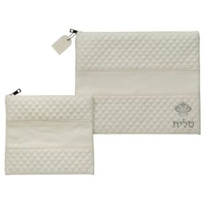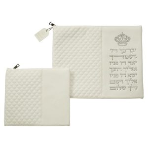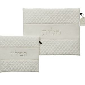סט טלית תפילין דמוי עור לבן אותיות בולטות "כתר"