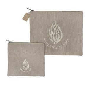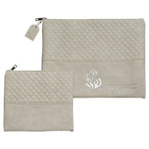סט טלית תפילין דמוי עור אפור עם הבלטה "האש שלי"