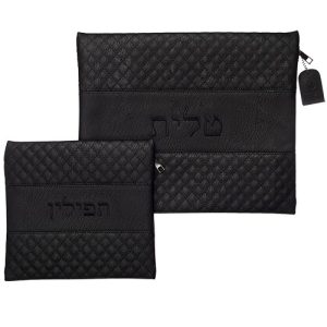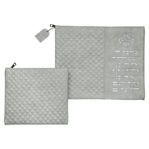 סט טלית תפילין דמוי עור אפור בטון אותיות בולטות