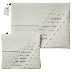 סט טלית תפילין דמוי עור לבן אותיות בולטות "יברכך"