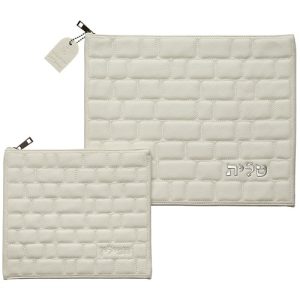 סט טלית תפילין דמוי עור לבן "כותל" עם הבלטה "טלית"