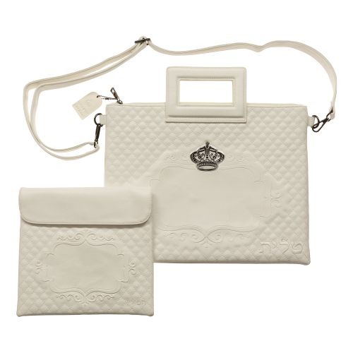 תיק מפואר לטלית תפילין דמוי עור גוון לבן + כתר